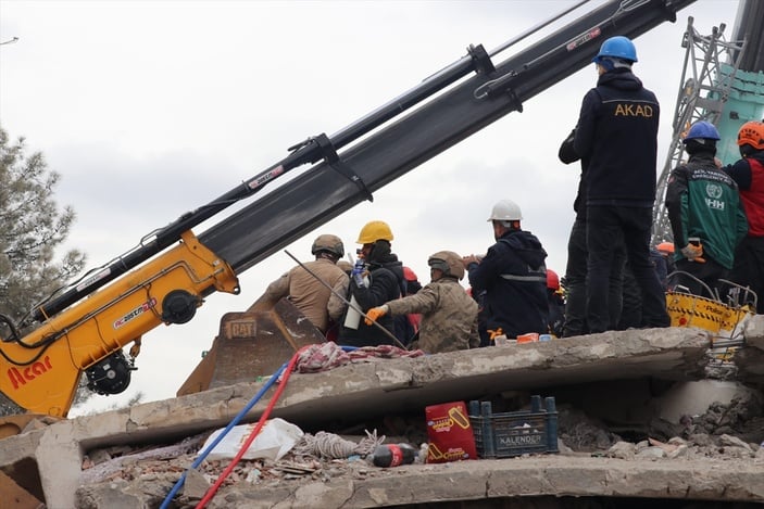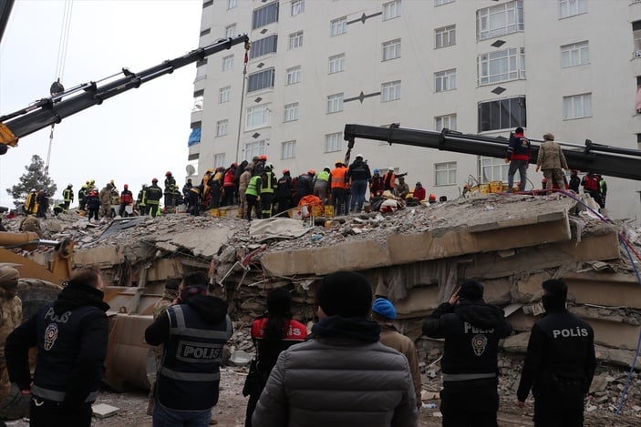Diyarbakır’da yıkılan binalar arasında yer alan merkez Bağlar ilçesi Mevlana Halit Mahallesi Cengizler Caddesi Hisami Apartmanı’nda enkaz altında kalanların kurtarılması amacıyla AFAD, UMKE, 112 Acil Sağlık, polis, jandarma ve itfaiye ekiplerinin yürüttüğü çalışmalar devam ediyor.