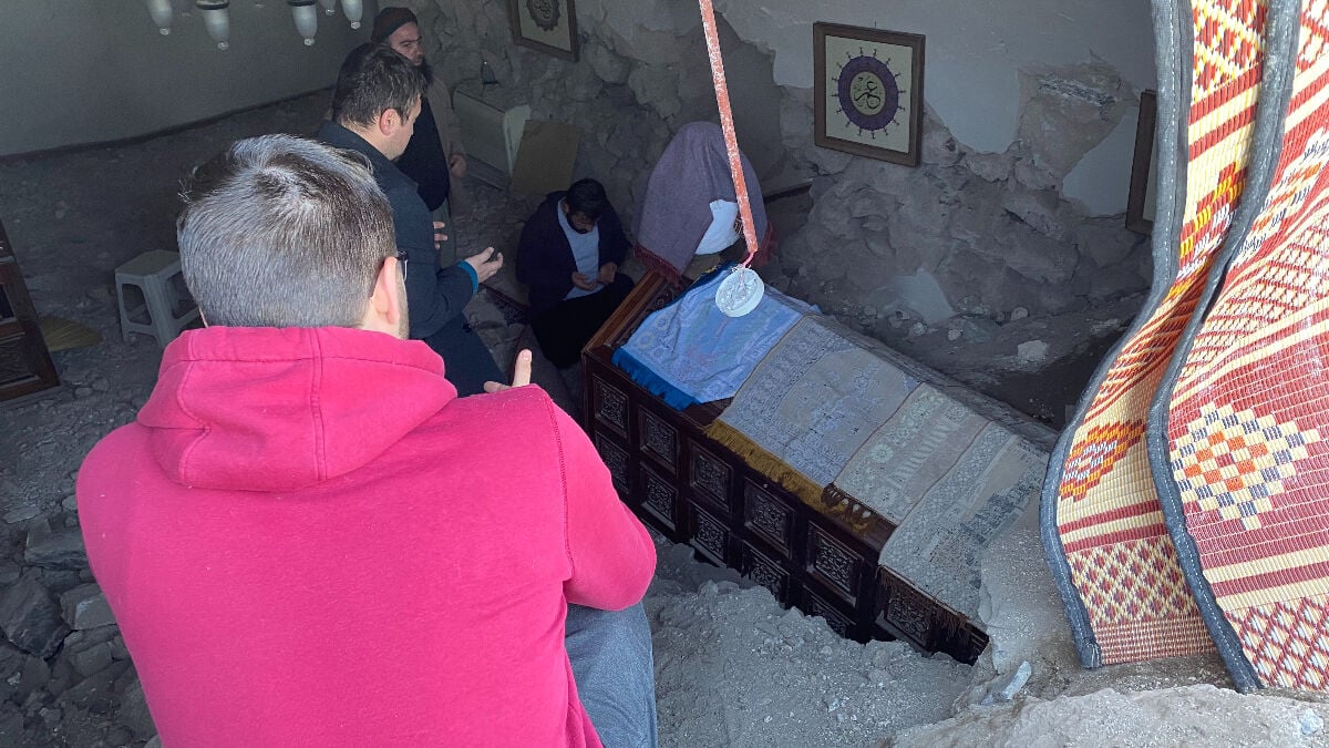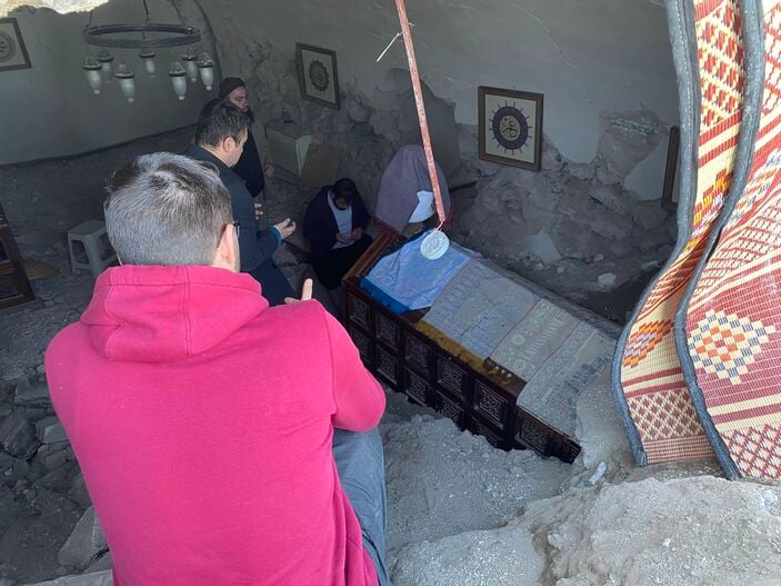 Türbe kısmen yıkılmış ve girişleri kapanmış olmasına rağmen vatandaşların içeriye girip dua ettikleri görüldü.