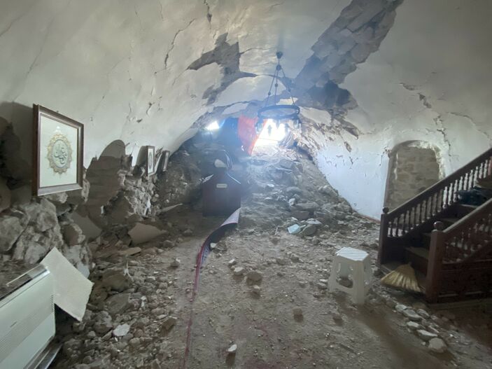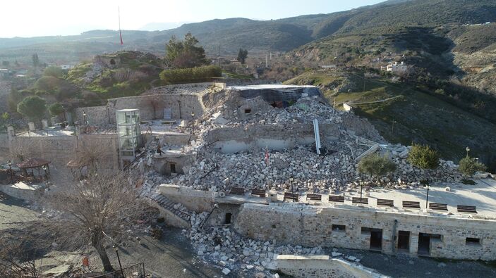 Türkiye’yi sallayan 7.7 ve 7.6 büyüklüğündeki depremler, Hatay’ın Kırıkhan ilçesi Alaybeyli köyündeki Darb-ı Sak Kalesi ile buradaki Bayezid-i Bistami Türbesi’ne de zarar verdi.