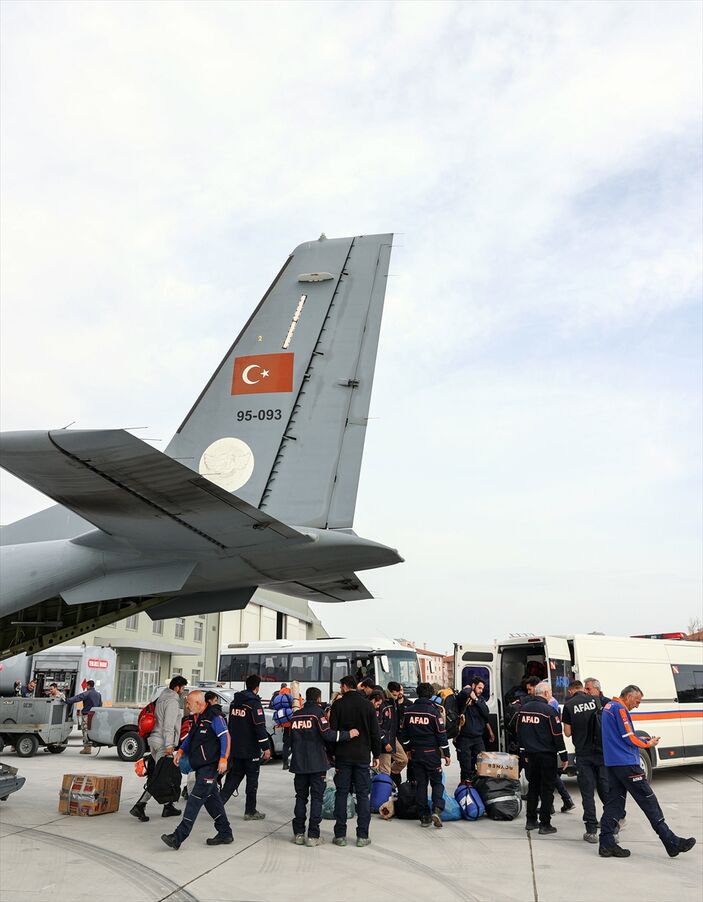 Hatay’dan kalkan ve depremlerin etkilediği illerde görev yapan 25’i AFAD, 14’ü sağlık personeli 39 görevliyi taşıyan Türk Hava Kuvvetlerine ait CASA tipi askeri kargo uçağı Atatürk Havalimanı’na iniş yaptı.