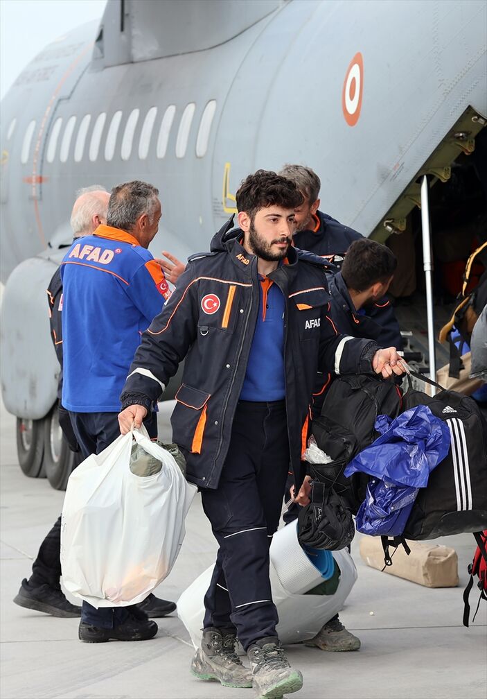 Depremler sonrası arama kurtarma faaliyetlerinde canla başla çalışan görevliler, dönüşlere başladı.