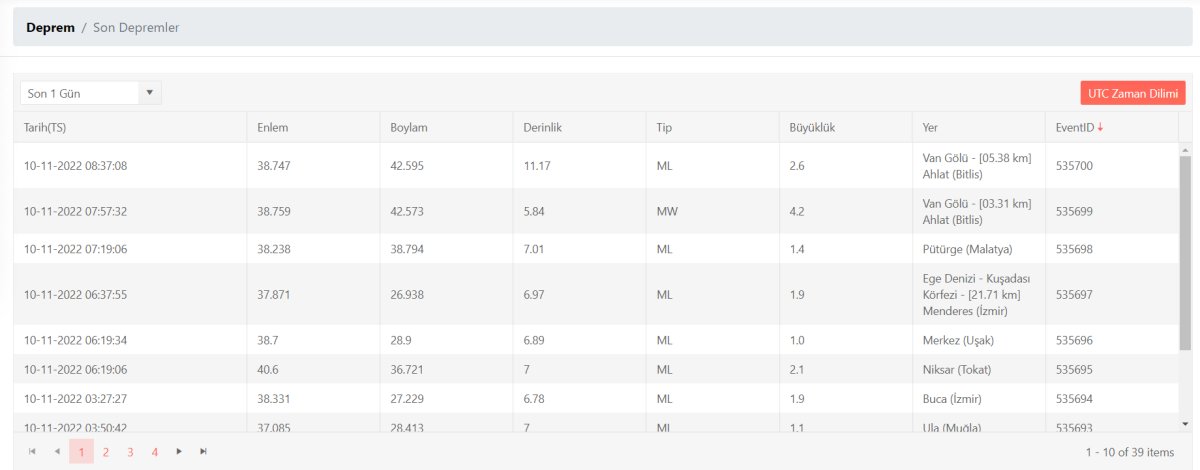 10 Kasım 2022 AFAD deprem verileri: